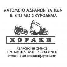 ΛΑΤΟΜΕΙΟ ΑΔΡΑΝΩΝ ΥΛΙΚΩΝ ΚΑΙ ΕΤΟΙΜΟΥ ΣΚΥΡΟΔΕΜΑΤΟΣ ΚΟΡΑΚΗΗ εταιρεία “ΚΟΡΑΚΗ” ιδρύθηκε το 1993 στην Σίφνο και εδρεύει μέχρι σήμερα στην περιοχή Ασπροβούνι, παράγοντας πιστοποιημένα αδρανή υλικά και έτοιμο σκυρόδεμα. Έχοντας ως εφαλτήριο την αγάπη και το μεράκι, η εταιρεία μας με επαγγελματισμό και συνέπεια προσφέρει άριστης ποιότητας υλικά και υπηρεσίες.Η εταιρεία αδρανών υλικών και έτοιμου σκυροδέματος “ΚΟΡΑΚΗ” αποκαθιστά πλήρως του λατομικούς χώρους, σεβόμενη το περιβάλλον και το θεσμικό και νομικό πλαίσιο. Στόχος της είναι η περιβαλλοντική ανάπλαση των χώρων εξόρυξης μέσω της αναδάσωσης και της προστασίας του φυσικού περιβάλλοντος. ΕΞΟΡΥΞΗ ΑΔΡΑΝΩΝ ΥΛΙΚΩΝΤα αδρανή υλικά είναι υψίστης ποιότητας και ανταποκρίνονται στις απαιτήσεις όλων των πελατών μας. Στις εγκαταστάσεις μας θα βρείτε άμμο, άμμο (Β’ ποιότητας), γαρμπίλι, χαλίκι, 3Α και πέτρες τα οποία φέρουν πιστοποίηση CE. ΠΑΡΑΓΩΓΗ ΕΤΟΙΜΟΥ ΣΚΥΡΟΔΕΜΑΤΟΣΗ εταιρεία μας επίσης μπορεί να σας προμηθεύσει με έτοιμο σκυρόδεμα διαφόρων ποιοτήτων, το οποίο και φέρει πιστοποίηση ΕΛΟΤ ΕΝ ISO 9001:2015.