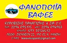 Οι εποχές δύσκολες και εμείς προσπαθούμε κάνοντας κάτι διαφορετικό για εσάς! Η ομάδα του Κοροβέσης αναλαμβάνει όλες τις εργασίες που αφορούν την επισκευή – εμφάνιση του αυτοκινήτου σας. Μπαίνουμε στην θέση του πελάτη γι ‘ αυτό νιώθουμε την ανάγκη συνεχώς να εκδίδουμε καινούριες τιμές – προσφορές. Φυσικά δεν φτάνει μόνο ένα ποιοτικό βάψιμο αυτοκινήτου για την αντοχή στο χρόνο αλλά παίζει τεράστιο ρόλο και η προεργασία ή η Φανοποιεία που προηγείται. Στο Φανοποιείο μας διαθέτουμε τον απαραίτητο εξοπλισμό για να ολοκληρώσουμε με ακρίβεια τις ανάλογες εργασίες.Είμαστε η δεύτερη γενιά μιας πολύχρονης οικογενειακής επιχείρησης με μεγάλη γνώση και εμπειρία στο είδος από το 1979. Βασική μας προτεραιότητα είναι η σχέση εμπιστοσύνης προς τον πελάτη , η εγγύηση της δουλειάς μας αλλά και των υλικών που χρησιμοποιούμε για το Βάψιμο του αυτοκινήτου. Στη διαδικασία αυτή μας ενδιαφέρει πάντα η επίτευξη του σκοπός μας , όσον αφορά το αποτέλεσμα του χρώματος μένοντας ο πελάτης μας πλήρως ικανοποιημένος. Χρησιμοποιούμε όλες τις νέες τεχνολογίες.Θέλοντας να βοηθήσουμε τους πελάτες μας δημιουργούμε συχνά καινούριες προσφορές. Η Φανοποιεία είναι το ατού μας , φτιάχνουμε το αμάξι σας ατρακάριστο.Περιγραφή Υπηρεσιών-ΠροϊόντωνΑποκατάσταση χρώματος