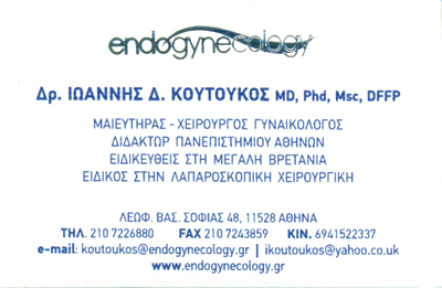 Διδάκτωρ Πανεπιστημίου ΑθηνώνΕιδικός στη Λαπαροσκοπική Ρομποτική ΧειρουργικήΘεραπεία ΥπογονιμότηταςΚαθημερινά κατόπιν ραντεβού.