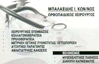 Χειρουργός Ορθοπεδικός - Ιατρικός ΒελονισμόςΔέχεται Δευτέρα - Τετάρτη - Παρασκευή 08:30-14:00 και 17:30-21:00