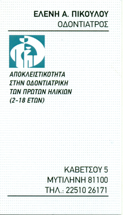 Στο ιατρείο μου ασχολούμαστε αποκλειστικά με την οδοντιατρική πρόληψη και θεραπεία παιδιών και εφήβων.Οι χώροι του ιατρείου είναι κατάλληλα διαμορφωμένοι ώστε να δημιουργούν έναπεριβάλλον φιλικό για τα παιδιά.Σε όλους τους γονείς αξίζει να έχουν όλες τις απαραίτητες πληροφορίες ώστενα μπορούν να πάρουν τις σωστές αποφάσεις σχετικά με την στοματική υγεία των παιδιών τους.Γι’αυτό ο χρόνος και η προσπάθεια που αφιερώνουμε σε κάθε παιδί και στους γονείς τουσυμβάλλουν ώστε τα παιδιά να αποκτήσουν μια ευχάριστη εμπειρία στο οδοντιατρείοκαθώς και συνήθειες που θα τους εξασφαλίσουν γερά δόντια για όλη τους τη ζωή.